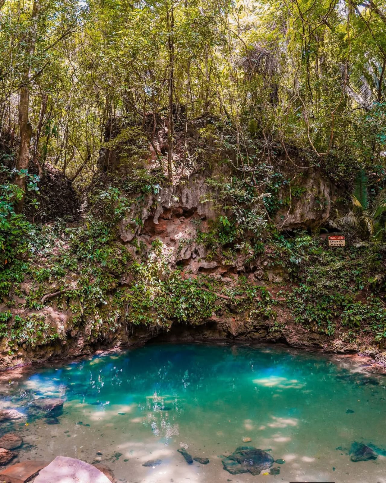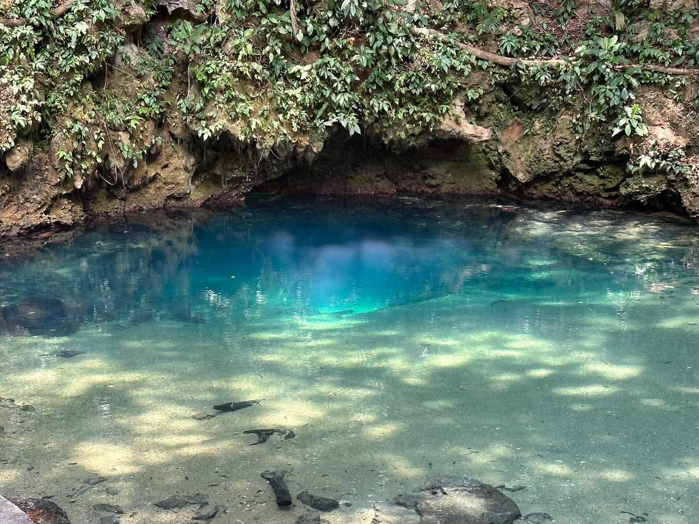 The adventure continues with a refreshing swim at the Inland Blue Hole, a natural jungle pool located in St. Herman’s Blue Hole National Park.